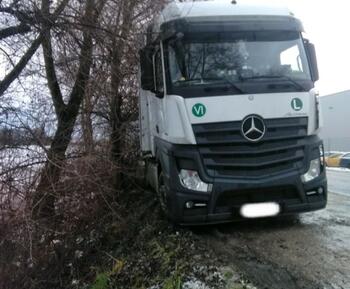 Während oder nach starkem Regen und Schnee kann sich der unbefestigte Straßenrand sehr schnell in eine Schlamm Grube verwandeln, so dass ein schweres Auto unweigerlich im Schlamm stecken bleibt. So wie bei dem Actros, das bei Chemnitz am Straßenrand