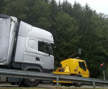 Eine Spedition aus Lettland hat uns angerufen, da dem Fahrer aufgefallen ist, dass seine Ladung sich verschoben hat. Der Fahrer ist geistesgegenwärtig zum nächsten Rastplatz gefahren und hat sein Fahrzeug abgestellt, da die Ladung offensichtlich aus