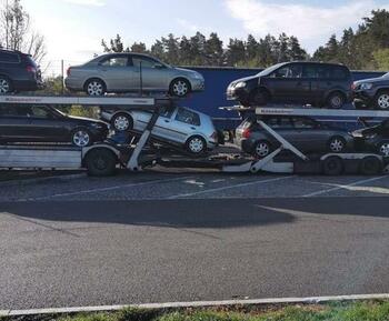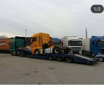 Durch den Motorschaden an dem Autotransporter musste ein Kollege des Fahrers mit seinem leeren Autotransporter kommen und die Ladung übernehmen. AWHelp24 kümmert sich nun darum, das Fahrzeug mit einem Tieflader zurück nach Russland zu überführen.
