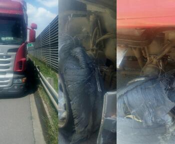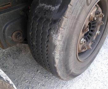 Bei dem Scania ist der Reifen geplatzt und dadurch auch die Felge kaputt gegangen.