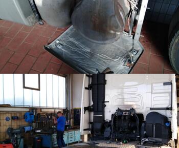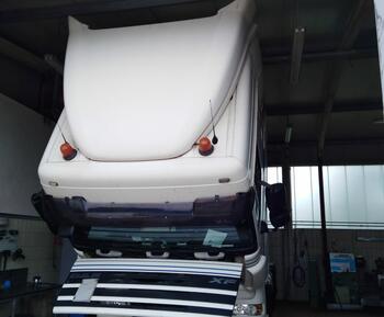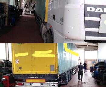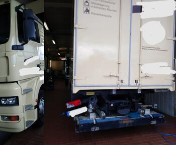 Bei dem Gespann wurden die Rückleuchten repariert, Reifen gewechselt und der Retarder wurde überprüft und repariert.