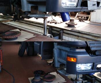 Der Auflieger hatte ein defektes Radlager, unsere Mechaniker haben das Lager schnell gewechselt.