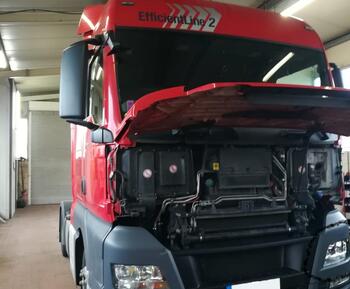Beim MAN wird der linke Scheinwerfer und der Bordsteinspiegel ausgetauscht.