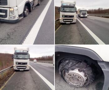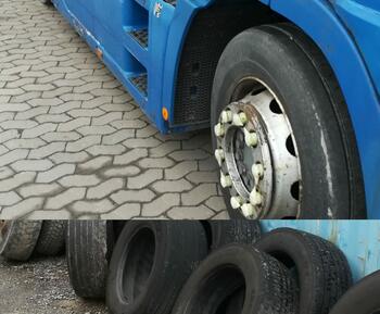 Bei dem Volvo mussten die Reifen für die Vorderachse gewechselt werden 385/55R22,5
