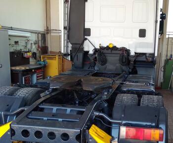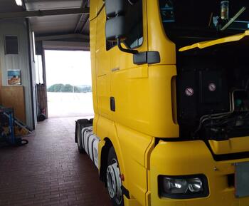 Ein MAN TGL aus Bad Neustadt bekommt eine neue Federung.