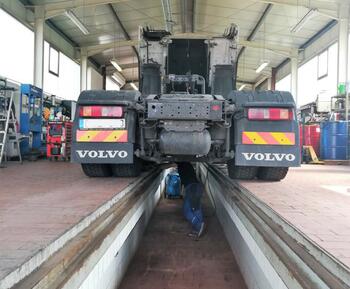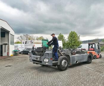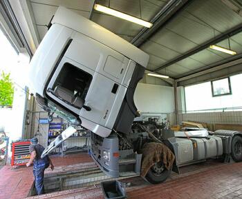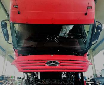 Hier wird ein Actros gerade in die Werkstatt gebracht und bekommt eine neues Fahrerhaus.