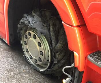 In the center of Dresden on the A4 motorway at the truck Scania R 440 blew up one of the twin wheels.