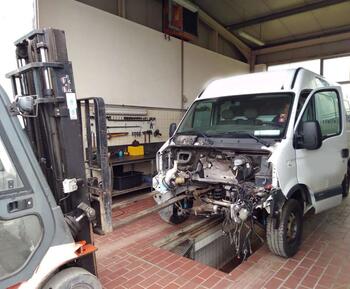Repairing Renault Master Minibus in Germany.