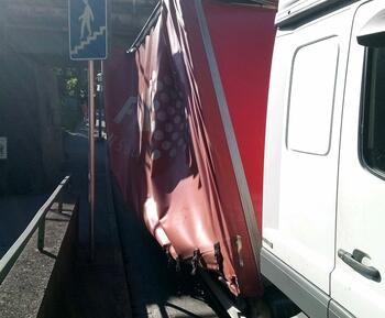 Niezwykły test wytrzymałości ciężarówki przeprowadził przewoźnik z krajów bałtyckich. Postanowił sprawdzić, co jest mocniejsze: plandeka na jego samochodzie czy betonowa podstawa mostu. Być może warunki do tego wypadku były inne. Ale wynik jest smutn
