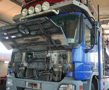 Naprawa instalacji elektrycznej samochodu ciężarowego Mercedes Actros w pobliżu miasta Münster w Niemczech.